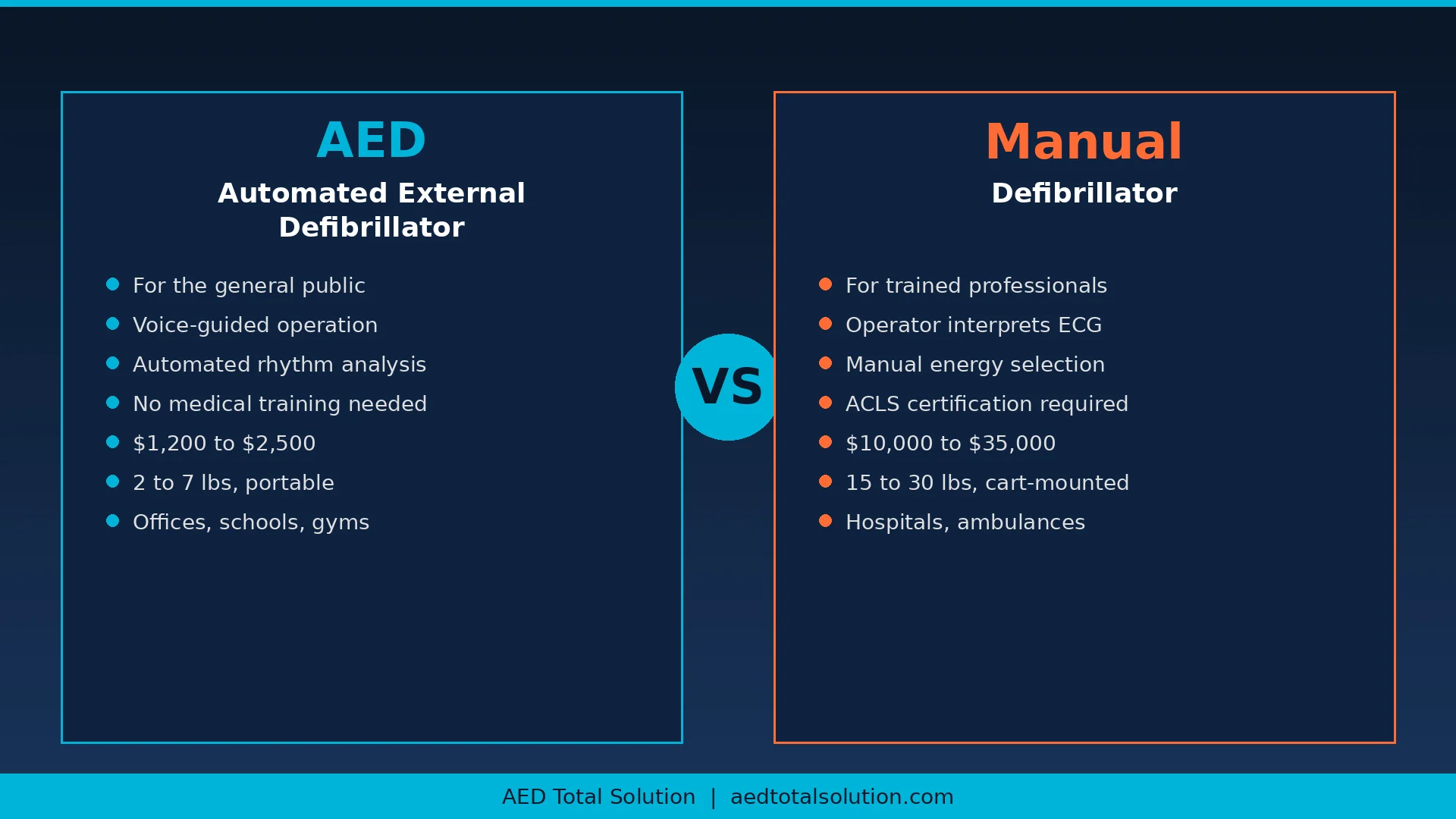 Cost is one of the most practical differences between AEDs and manual defibrillators. Here is a realistic breakdown: